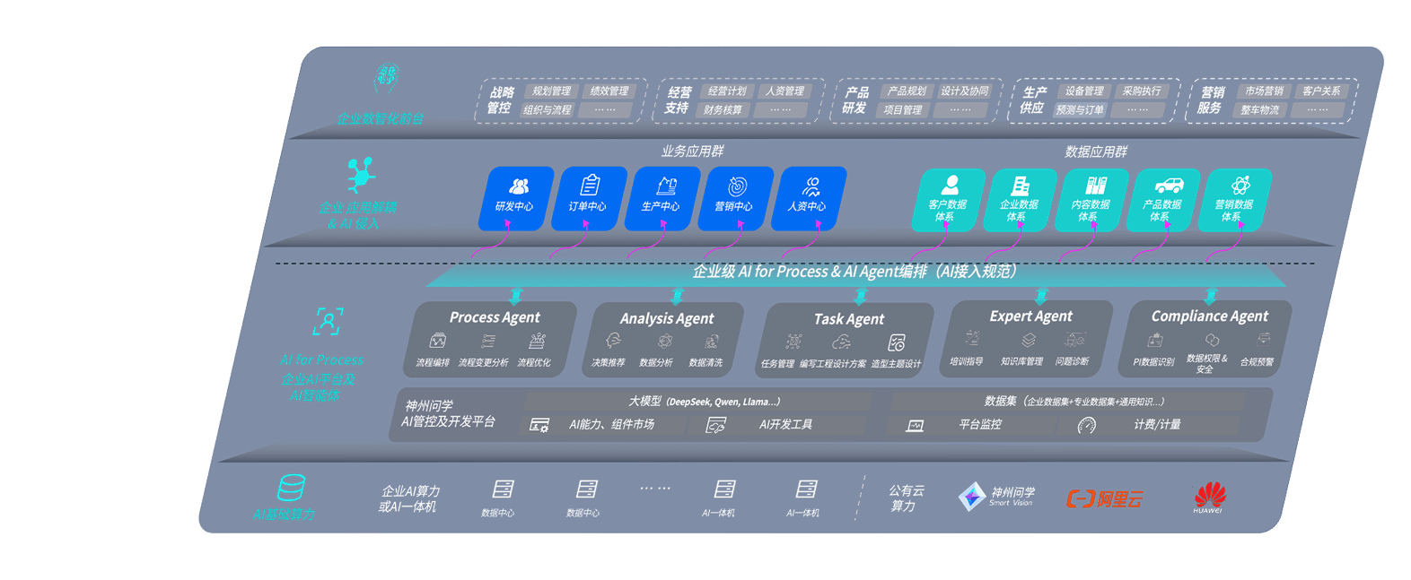 6合联盟问学智车解决方案是一套基于AI技术的汽车行业智能化系统,,,,覆盖从底层算力到顶层AI应用的全栈方案。。方案由算力层、、、、模型层和应用层组成:算力层,,,方案支持多种一体机配置,,具备云端灵活部署、、、、多云适配以及动态优化计算资源的能力;模型层,,,,6合联盟问学平台版提供了企业级AI应用一站式构建与管理平台,,,支持基于后训练强化技术的汽车企业专属模型的训练、、、、评测和运营;应用层,,6合联盟问学DeepSeek版提供包括超级员工、、智能招采、、、、智能营销、、、、智能客服、、、、AI for BI等一系列解决方案,,,可助力汽车行业实现数字化转型,,,让管理更智能、、、响应更敏捷。。。。